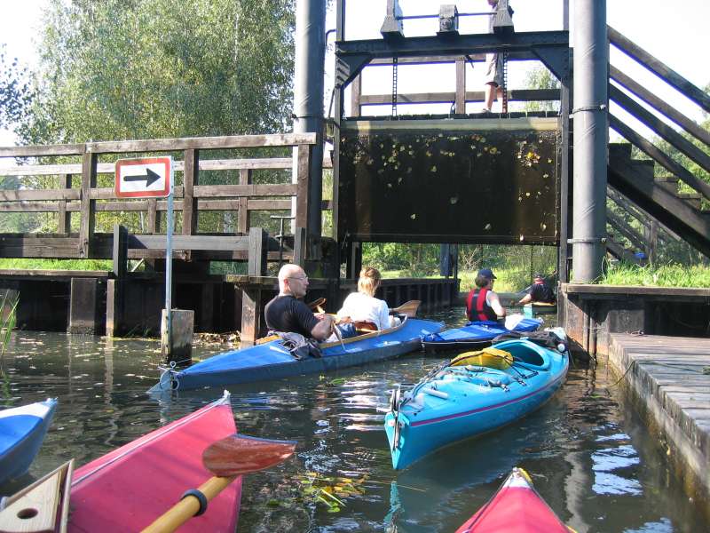 Eine "Marie-Antoinette-Schleuse", wie jemand sie so treffend nannte. Davon gibt's reichlich im Spreewald. Selbstbedienung ist angesagt. |