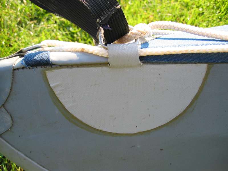 Und eine schon mehrfach vorgestellte Lösung "D- Ringe an alten Bootshäuten" hier noch einmal gezeigt. Diese Konstruktion hat sich in der Praxis