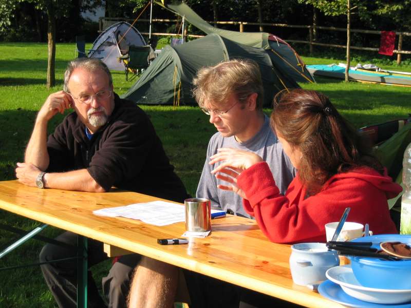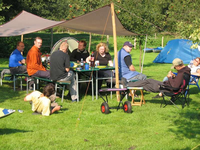 Auch 2005 trafen sich wieder die hedonistisch veranlagten Faltbootfahrer - das klingt irgendwie wie schwarzer Rappe oder so - auf dem Zeltplatz der Familie Seyberth. Weitere Infos zum Treffen im Bericht von 2004. Im Forum von faltboot.de