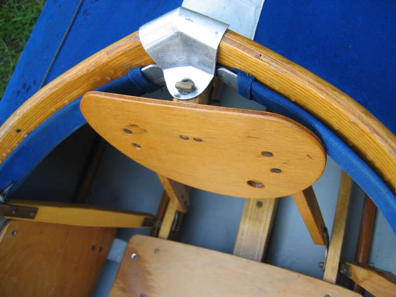 Die charakteristische Rückenlehne - unverwechselbar Klepper. Sie läßt sich sehr gut umklappen und erlaubt so ein relativ komfortables