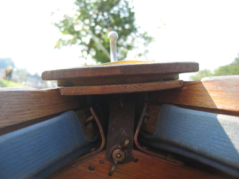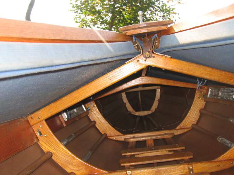Süllrandbefestigung mit Haken am Mittelspant. Die Aufnahme ist leider unscharf. |