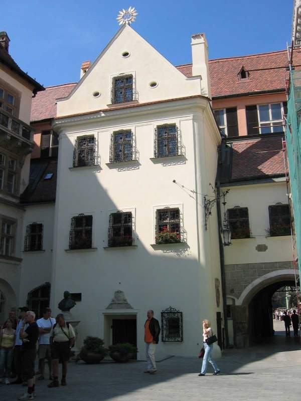 Eines der wenigen noch nicht renovierten Häuser im Bereich der Krönungskirche. |