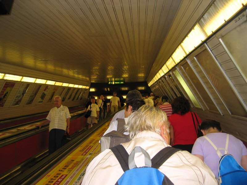 So in der Mitte einer der ewiglangen Rolltreppen. |