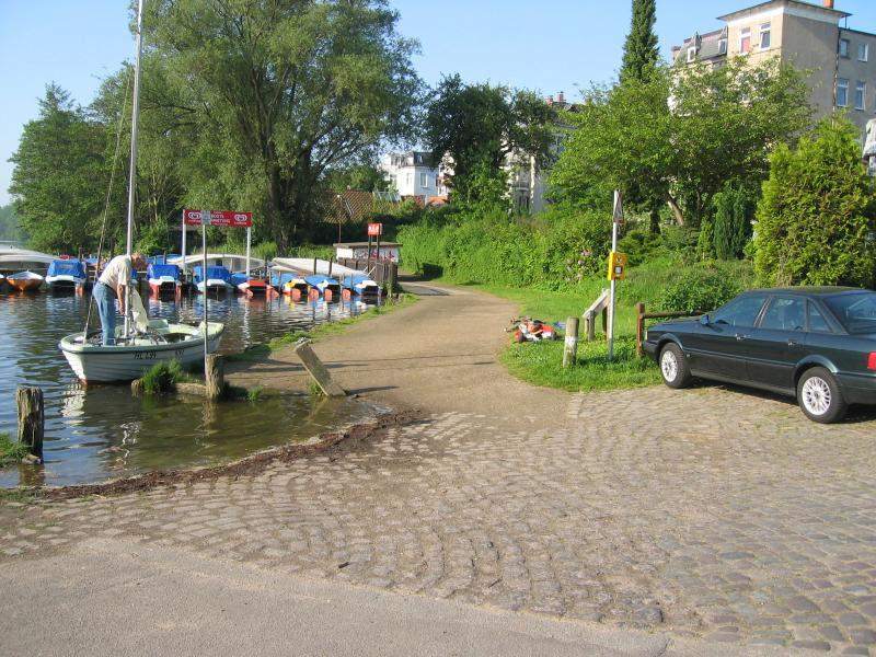 Als Einsetzstelle ist der Bootsanleger für die Wakenitz- Schifffahrt an der Moltkebrücke bestens geeignet. Nass oder trocken einsteigen - beides