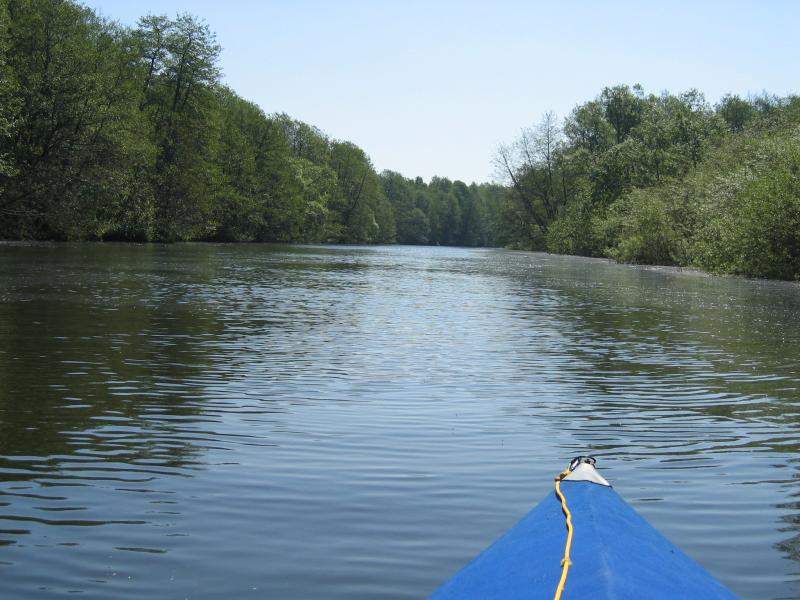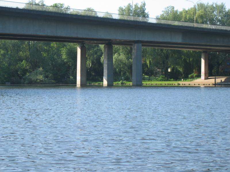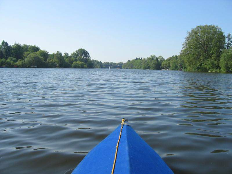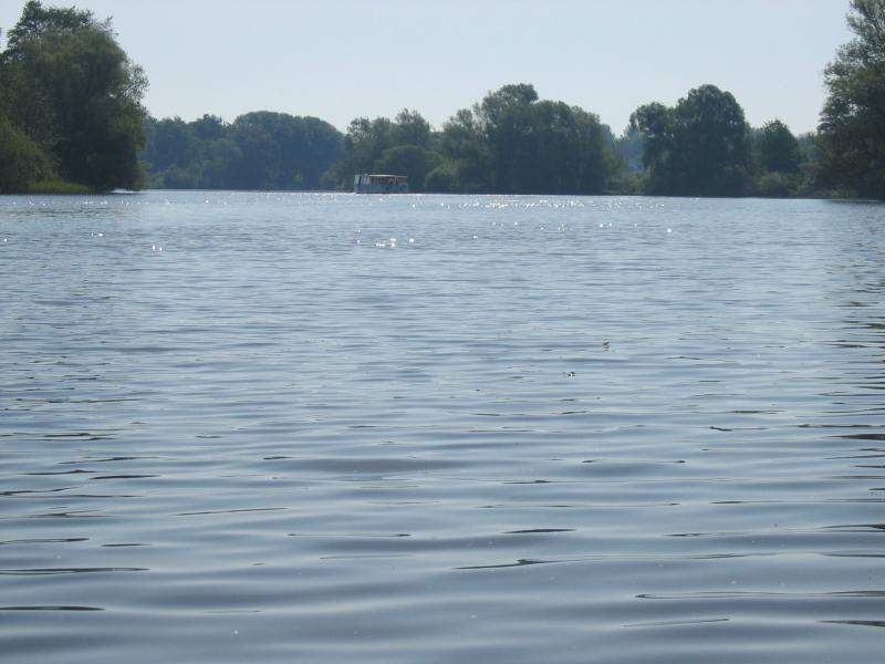 Im Bereich nahe der Stadt gleicht der Fluss einer Kette von Seen. Das ändert sich erst hinter der Eisenbahnbrücke. |