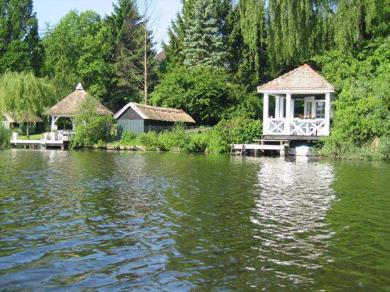 Rechts und links liegen schmucke Wassergrundstücke. Das Wakenitzufer ist das bevorzugte Siedlungsgebiet wohlhabender Lübecker. Schön