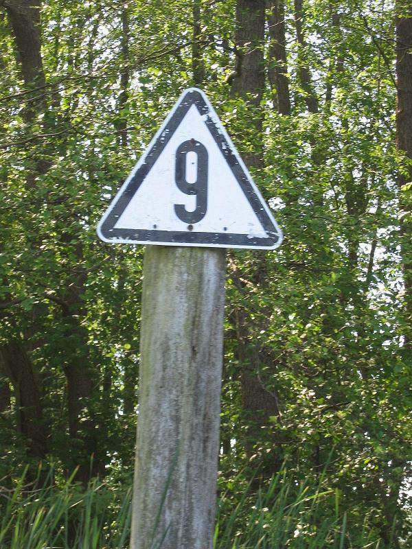 Jeden Kilometer gibt es so ein Schild. Dieses steht kurz vor der Eisenbahnbrücke der Strecke Lübeck - Bad Kleinen. |