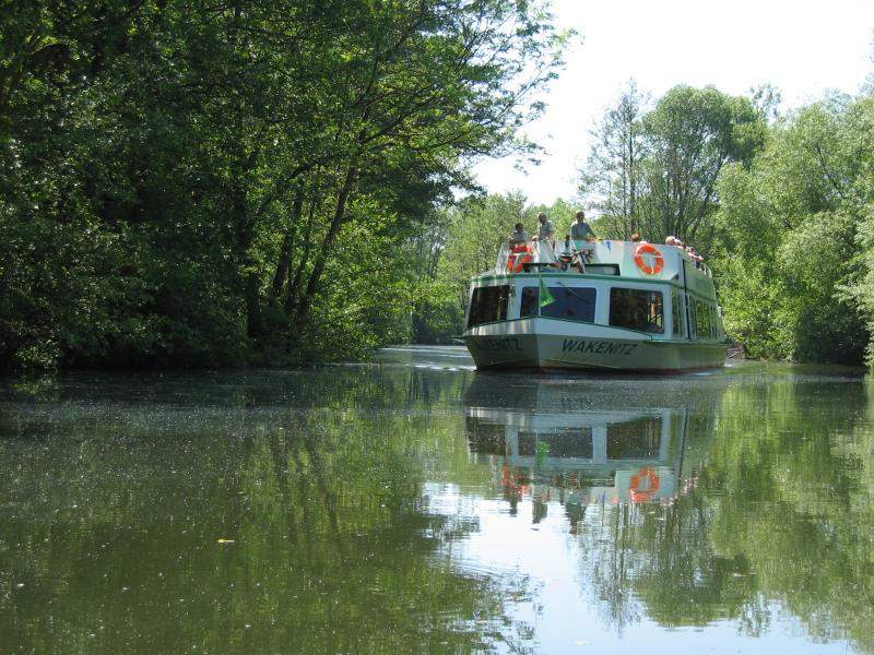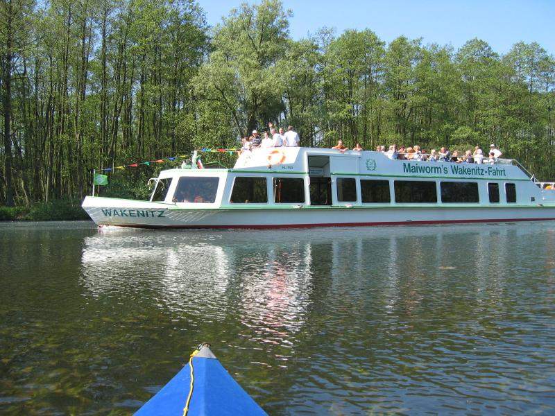 Ebenfalls hin und wieder begegnet man den Schiffen der Wakenitz- Schifffahrt. Sie schleichen sich recht leise heran und gleiten dann fast ohne Wellen