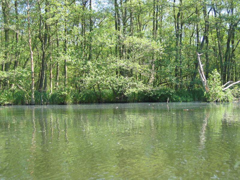 Die Ufer werden in weiten Bereichen von undurchdringlichem Bewuchs gesäumt, einen Eisvogel zu sehen ist keine Seltenheit und Ringelnattern schwimmen immer mal