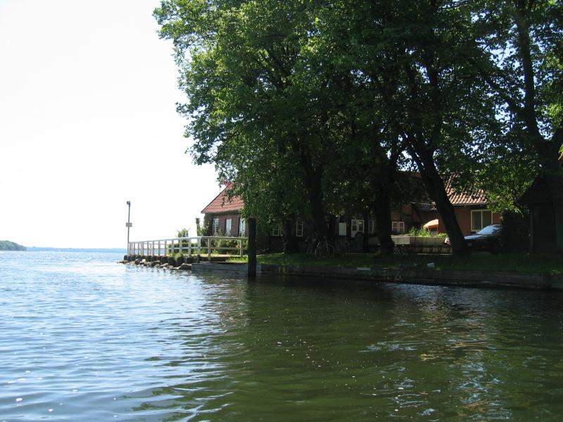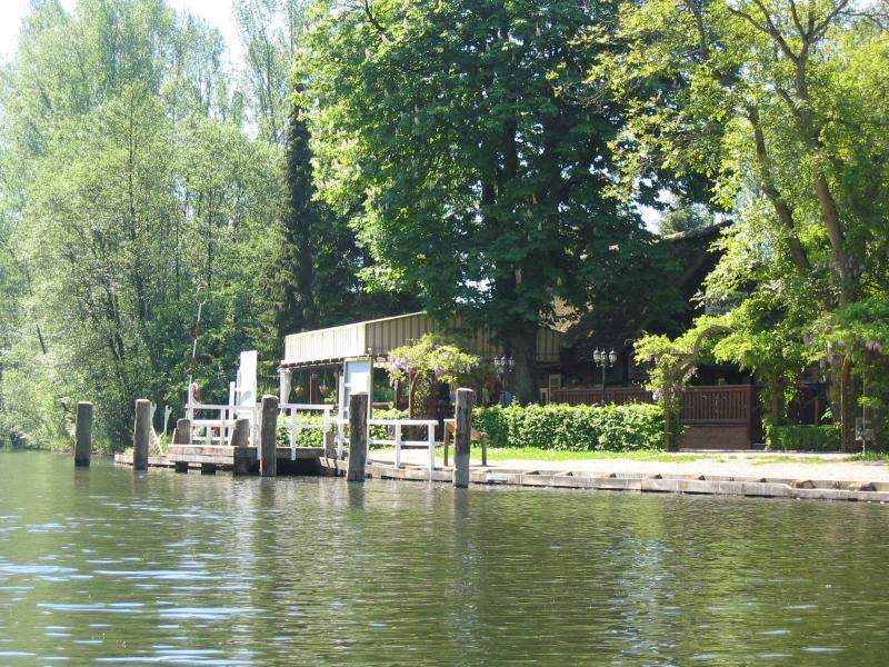 Auch hier kann man schön im Biergarten Rast machen. Anlanden ist gut möglich. Das Boot sollte aber nicht links oder rechts vom Bootssteg vertäut