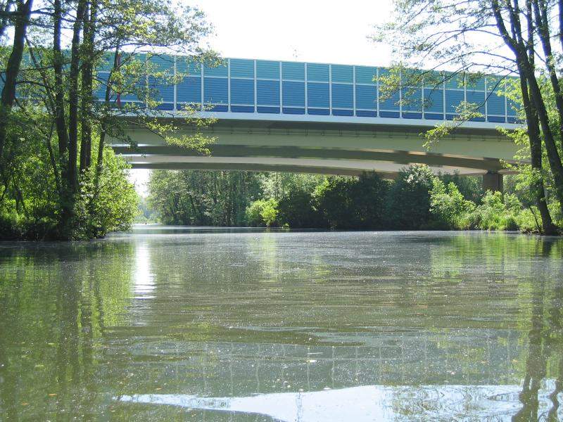 Gleich rechts hinter der Brücke die Möglichkeit zum Ein- oder Aussetzen. |