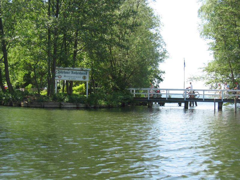 "Fährhaus Rothenhusen" - links geht es direkt in den Ratzeburger See, rechts mit etwas ducken auch. Dort gibt es an einer Holzplanke auf richtiger Höhe