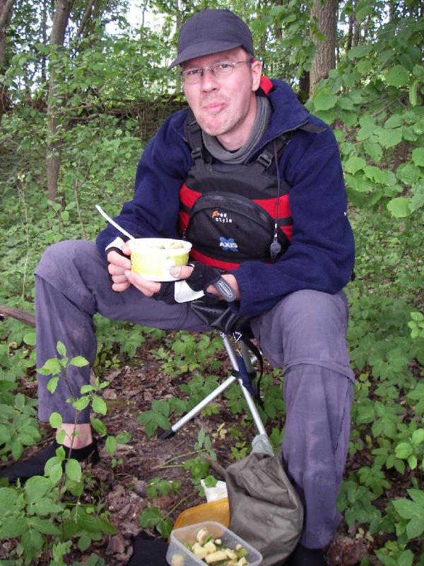 Wolfgang bastelt neben tollen Liegerädern, Booten und Zelten auch Pfannkuchen. Diese tarnfarbene Masse bezeichnete er jedenfalls so. Ich glaube, seine