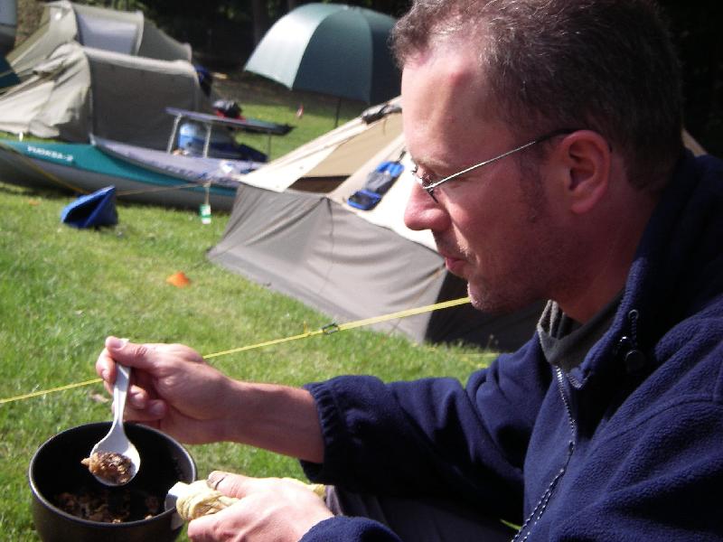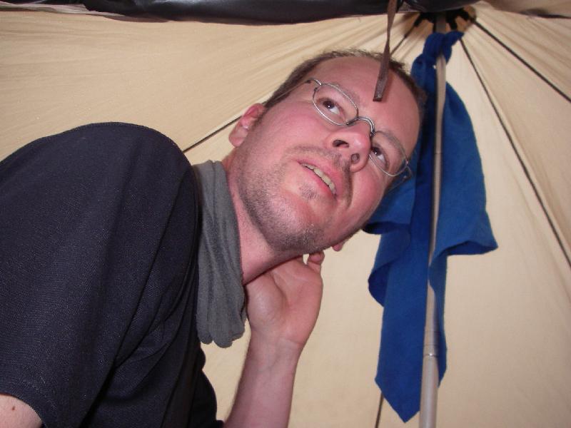 Die Witterung läßt einen dankbar sein für Schutz unter Gunnar's Vorzelt und ... |