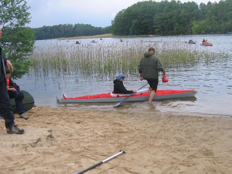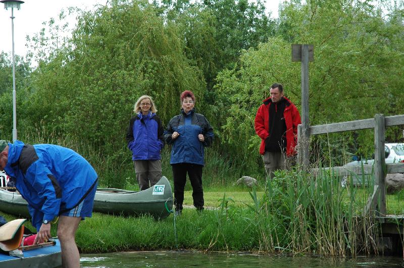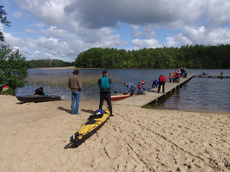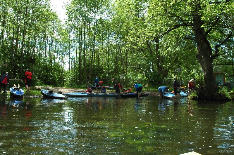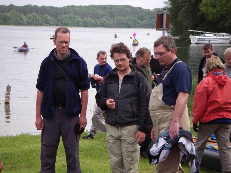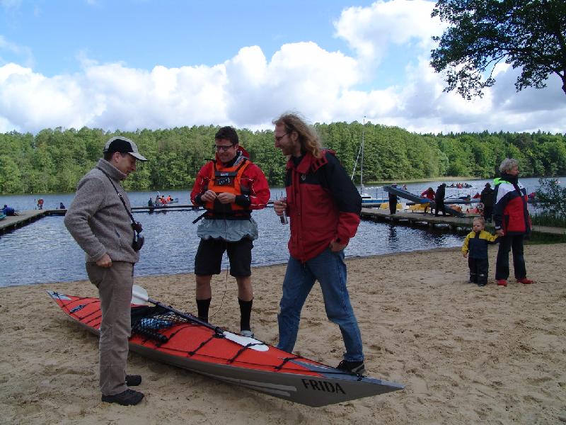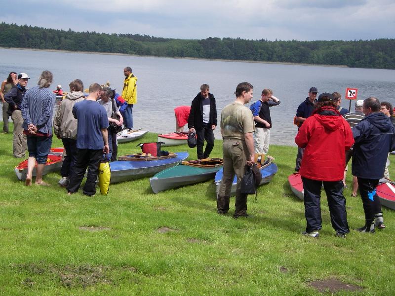 Am Landeplatz in Schwarz. Vor dem Kaffee der Aufgalopp vieler schöner Faltboote. |
