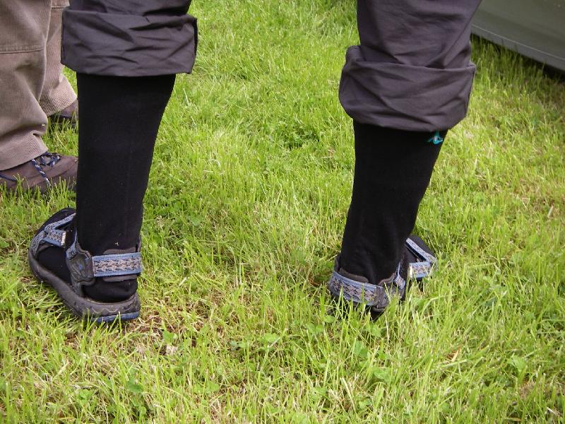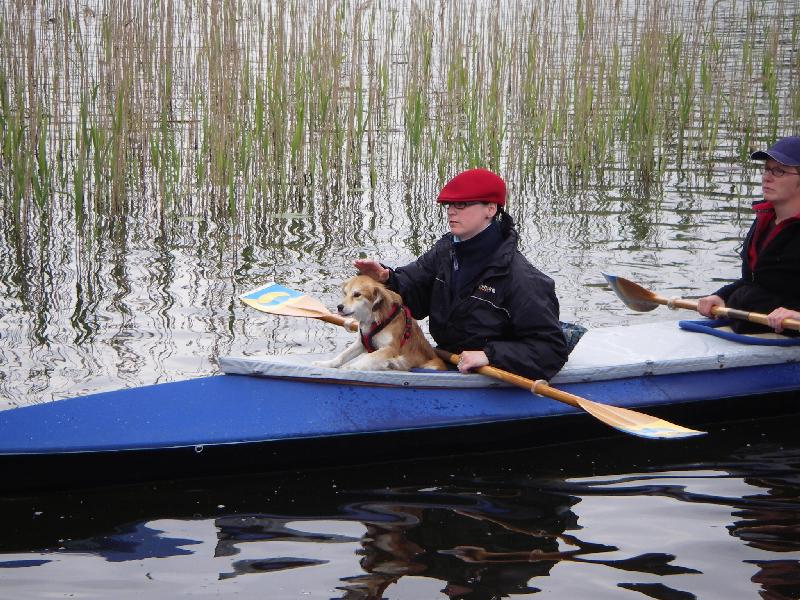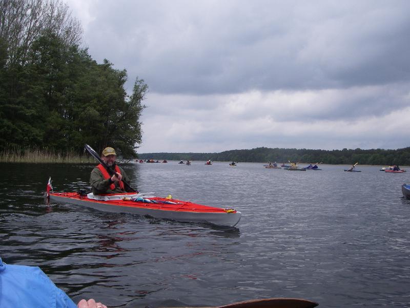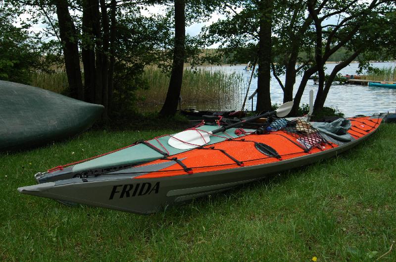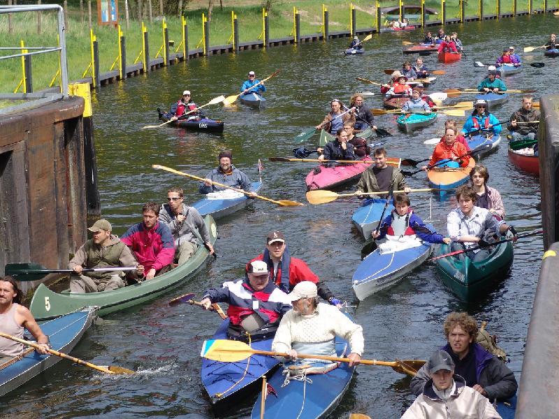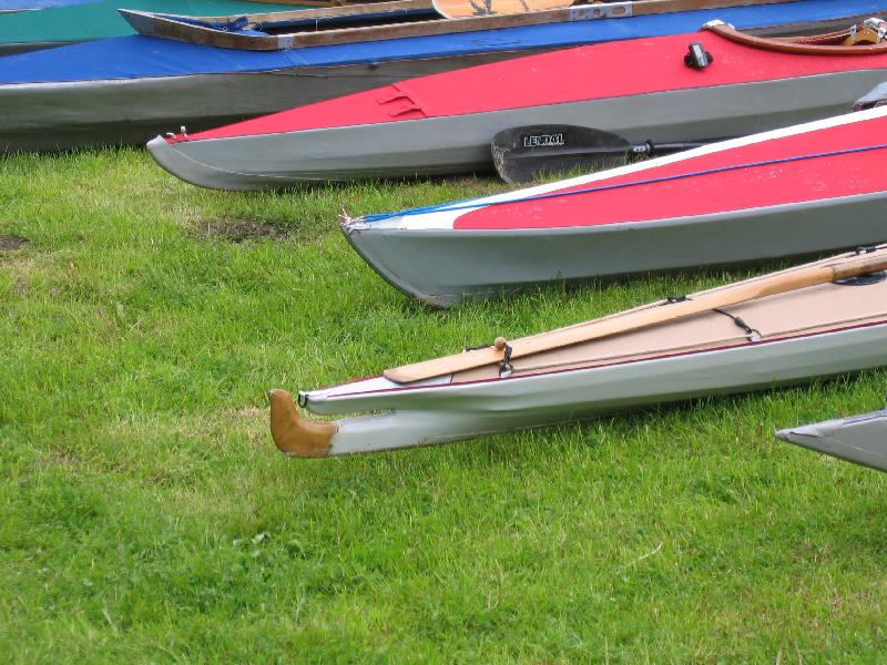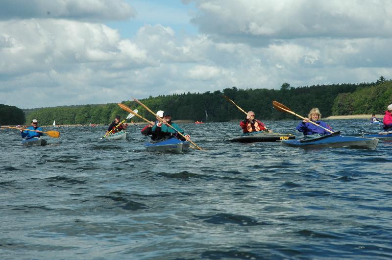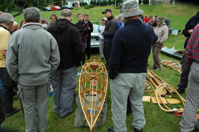 Am Landeplatz in Schwarz. Vor dem Kaffee der Aufgalopp vieler schöner Faltboote. |