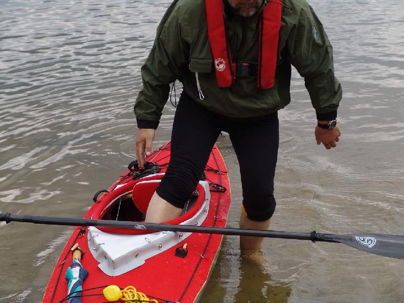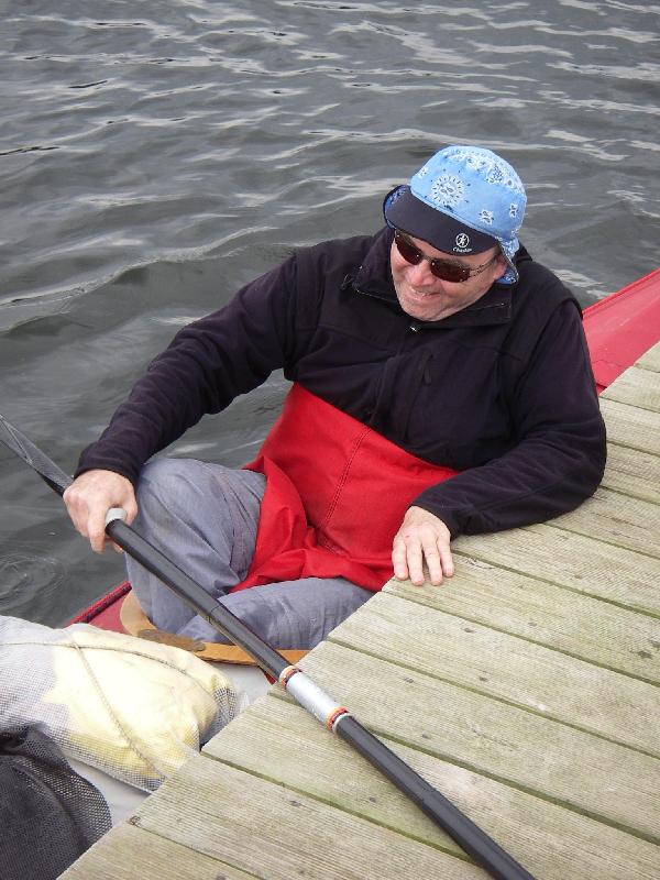 Auf zur "Kaffeefahrt" am Samstag. Piet startet mit seinem selbstgebauten Einer.