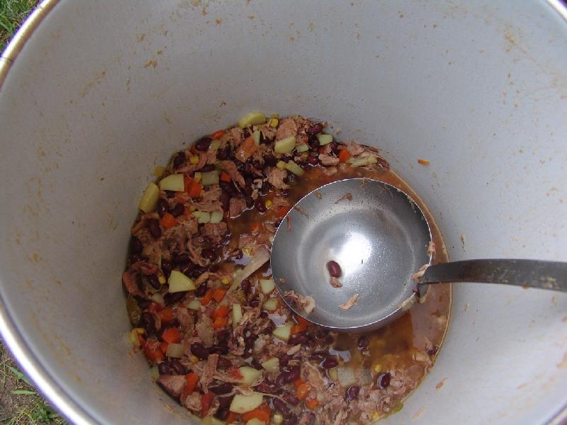Am nächsten Tag wurden die Reste zusammen mit reichlich Gemüse zu einer superleckeren Suppe (ebenfalls von Kurt) verarbeitet. Auch deren Halbwertszeit