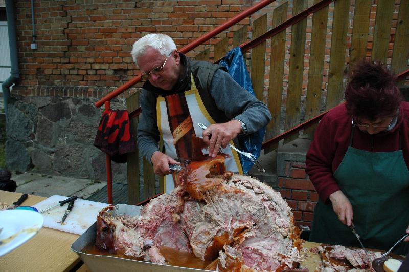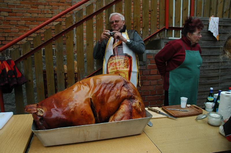 ... und bei diesem schon rein reflexartig! Paddler's Bratschweine werden von Jahr zu Jahr größer. Kurt, der Chef-Bratschwein-Zerleger, kann seiner