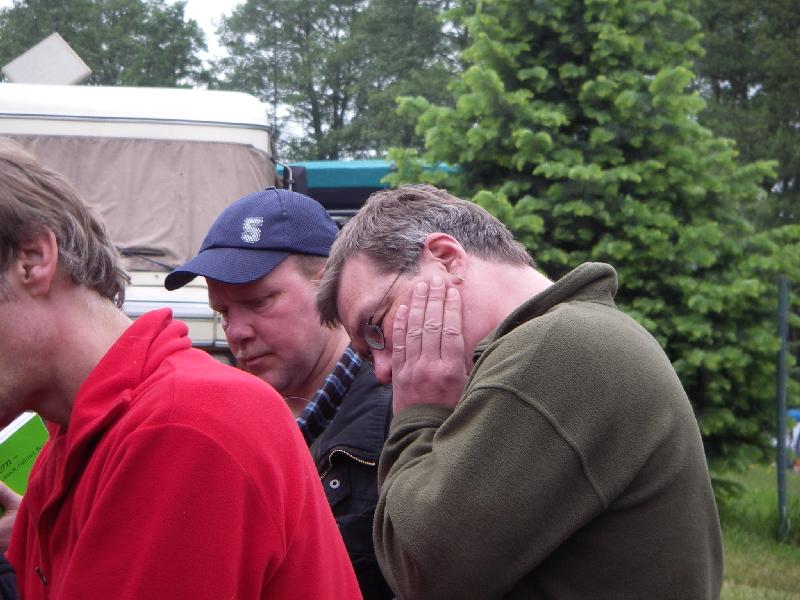 Boote aufbauen ist für Uwe kein Thema - auch die Kommentare der Zuschauer, wie dieser 3 Mückenscheuchen hier, nahm er gelassen. Die Mücken hatten