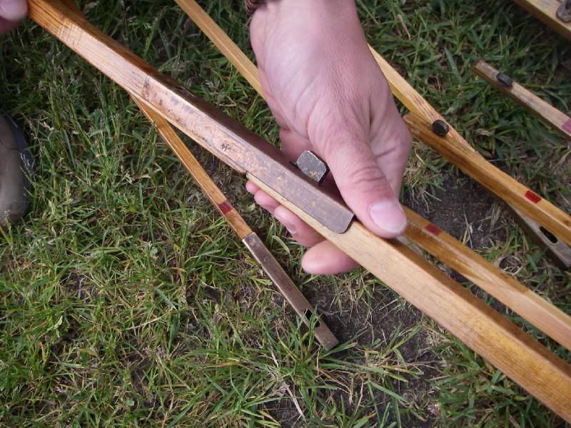 Die Befestigung der Diagonalstäbe auf dem Kiel. |