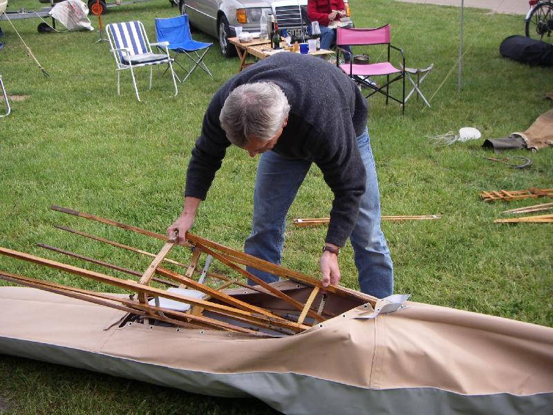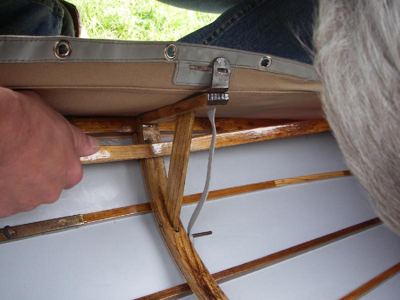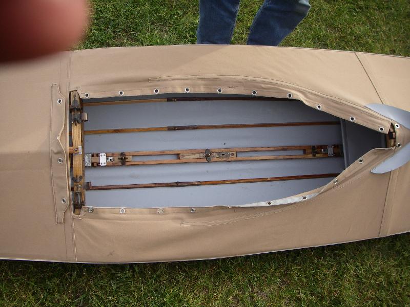 Die Süllrandspitze des Bootes. Wie bei Klepper mit Scharnier - allerdings innen liegend! Der Süllrand ist vermutlich ein Ersatzteil aus der Zeit nach