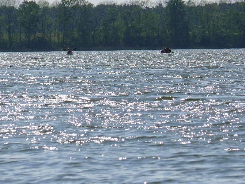Zwei einsame Kanadier auf dem sonnenbeschienenen Pälitzsee. Pfadfinder, wie sich wenig später heraus stellte. |