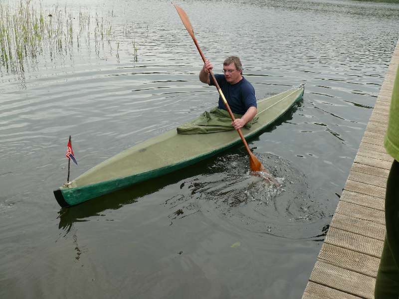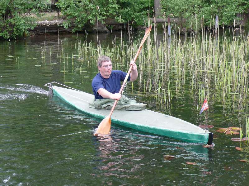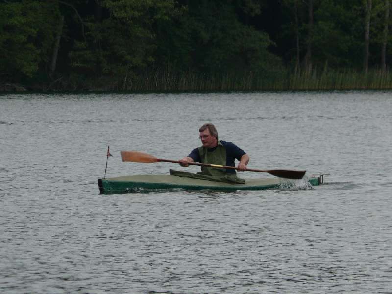 240 cm langes Rennpaddel, das aufgrund seines hohlen Schaftes weniger als sagenhafte 1200g wiegen soll. Was Achim noch fehlt, ist eine Art Kühlerfigur aus