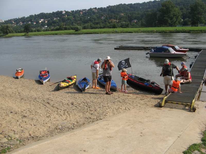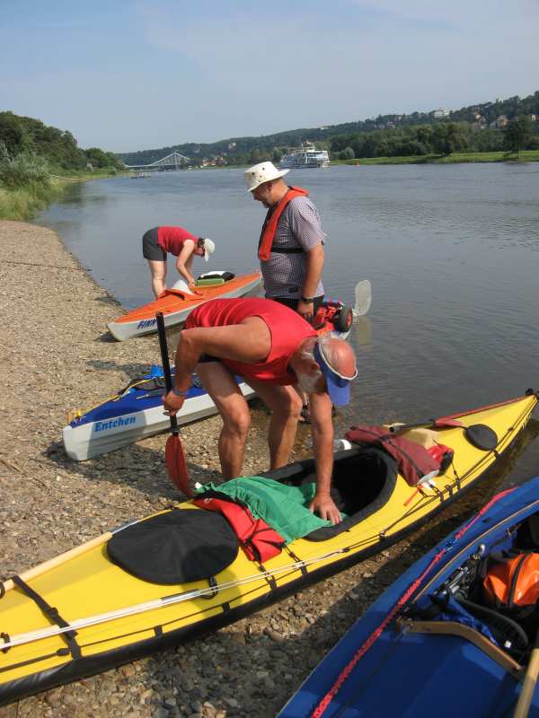 Es wurde ernst - die schwer bepackten Boote lagen auf dem kiesigen Elbstrand.