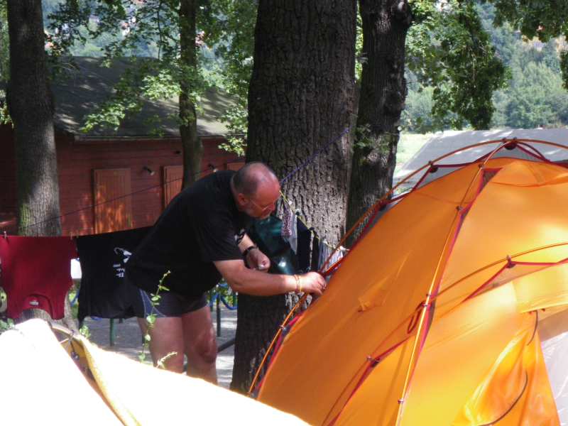 Letzte Arbeiten an der Ausrüstung wurden vorgenommen. Das Zelt musste dicht sein!