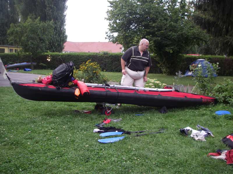 dicht (so kamen nur ca. 3 Liter Wasser ins Boot). Dann mussten wir mit aller Kraft gemeinsam das Zelt festhalten. Anschließend sahen wir aus wie halbersoffene