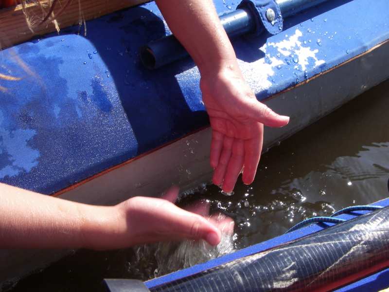 Wenn die Kurzen schlapp sind, neigen sie zum Unfug! Eines der Lieblingsspiele der lieben Kleinen: Im Wasser rumpütschern, wenn sie im Boot sitzen - am
