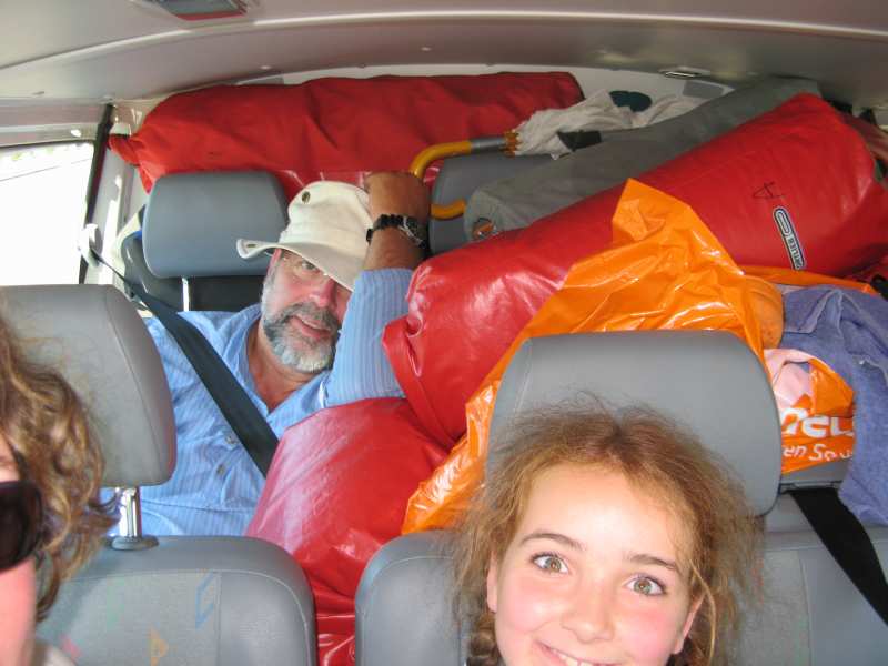 Dann legte er los. Am Schluss war alles verstaut und die Kleingläubigen warfen uns vor ihm in den Staub. Allerdings war es gemütlich eng und am Ende