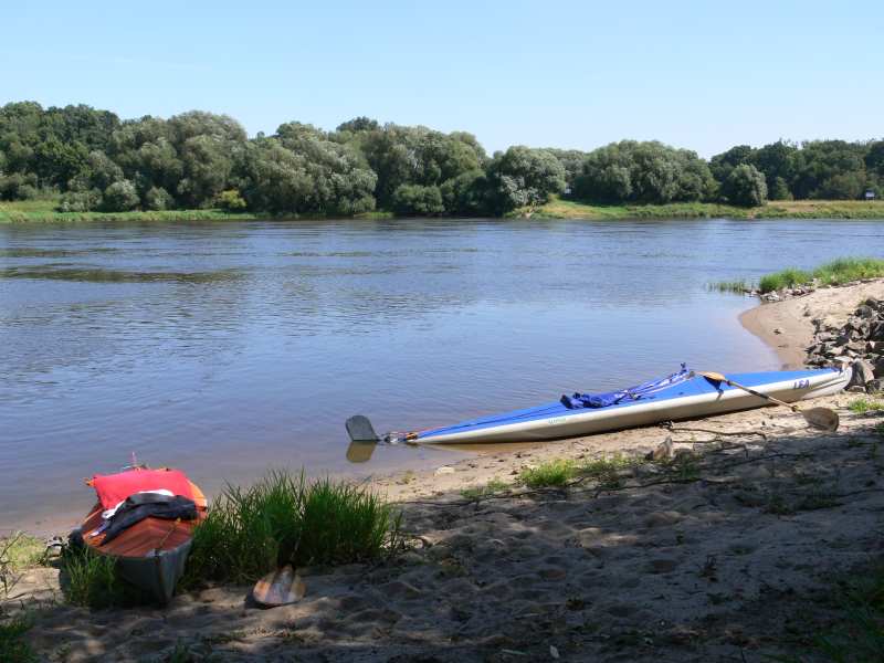 fahren. Von der Elbe her immer schön scharf links fahren und dann möglichst nahe vor dem Crakauer Wehr nach rechts queren (Vorsicht! Strömungen bei