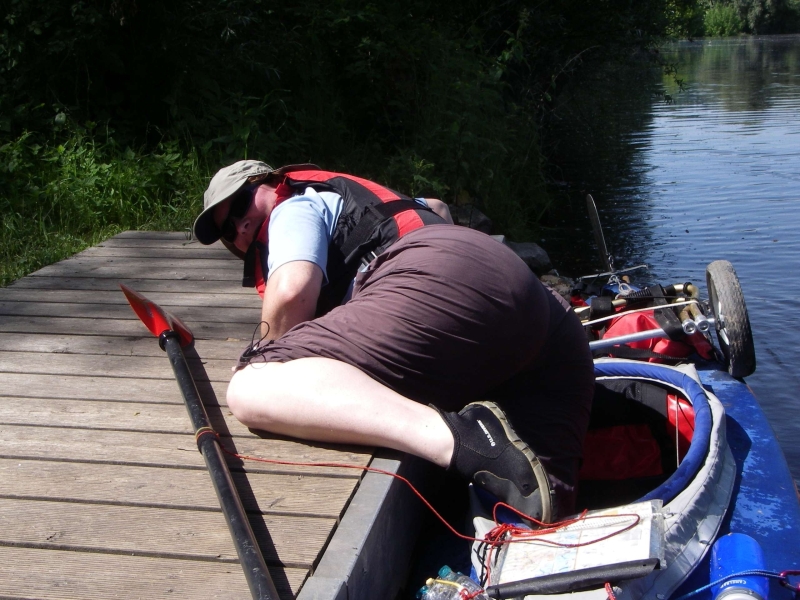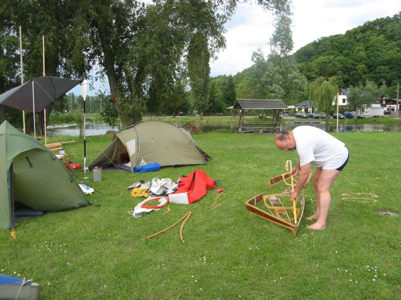 Faltbootmikado! Des wackeren Faltbootwanderers triste Pflicht am Beginn einer Tour!