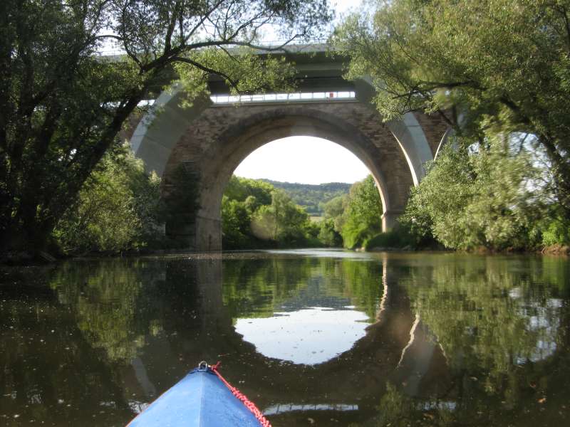 Kurz vor Jena einige Brücken, u.a. die der Autobahn, die hier an Jena vorbei führt. Aus der Paddlerperspektive einfach ein fesselnder Anblick und eine