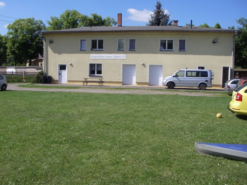 Das Bootshaus Rudolstädter Kanu-Vereins. Es ist etwas schwer zu finden, besonders nachts ;-) . Wichtig ist, dass man auf die "Breitscheidstraße" in Rudolstadt kommt. Von dort in die "Macheleidtstraße" (nicht über die Saalebrücke fahren!) und