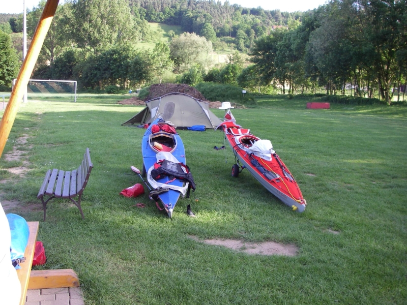 Nach Auskunft von Mitpaddlern soll dieser Platz dem von Orlamünde (unserem ursprünlichen Ziel) deutlich vorzuziehen sein, weil erheblich besser (vor allem